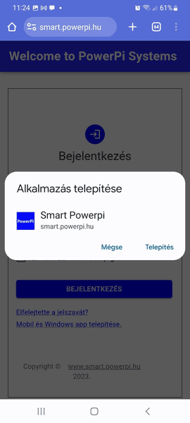 Telepítés Android operációs rendszerű telefonra, Chrome böngészőből: